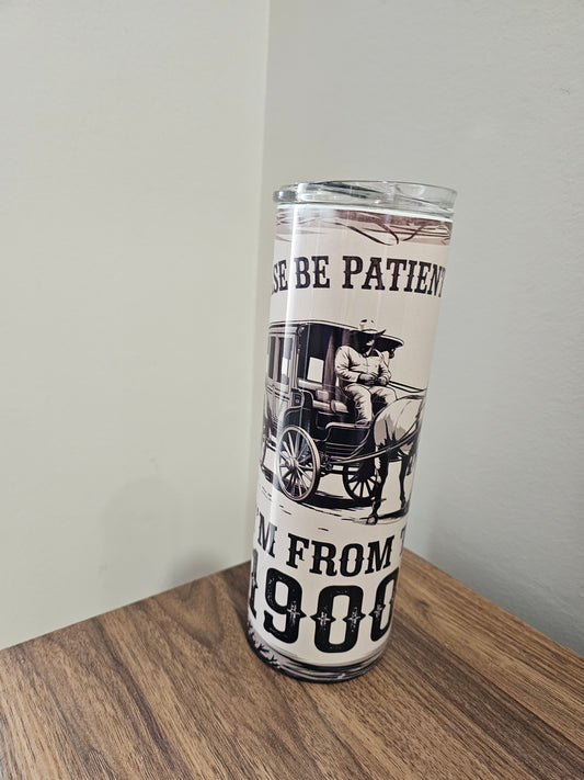 Sold outGlass libby with lid and straw